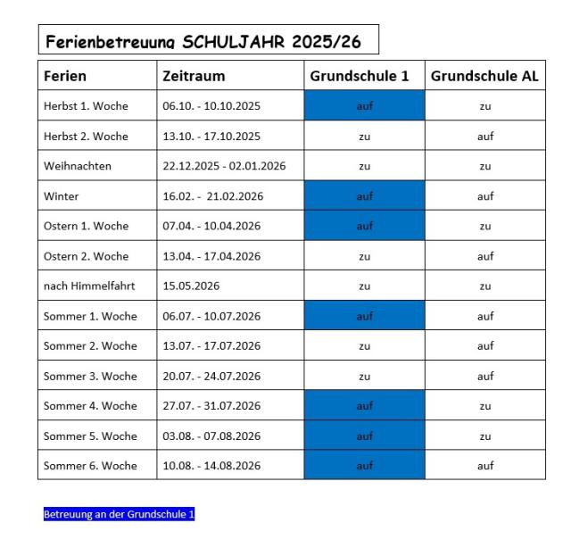 Nachfolgend noch einmal unsere Hortöffnungs- und Schließzeiten im Überblick: